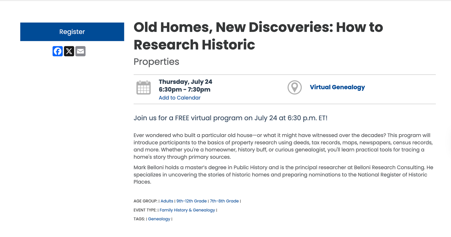 - Webinar on historic homes